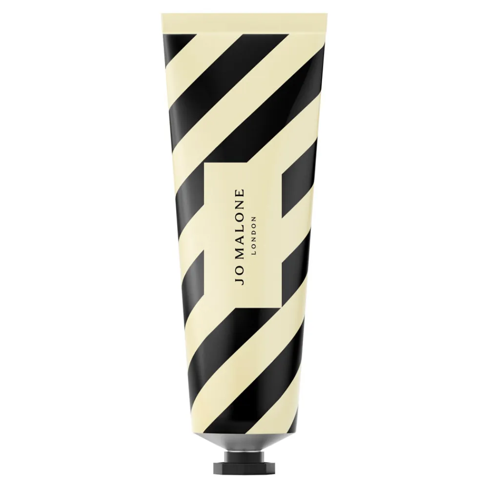 Die Jo Malone London Hand Cream besticht durch ihr elegantes und zugleich praktisches Design. Die schlanke, zylindrische Form des vollständig recycelbaren Aluminiumtubus liegt angenehm in der Hand und passt in jede Tasche. Die stilvolle schwarz-cremefarbene Streifenoptik verleiht dem Produkt eine zeitlose Eleganz, die sowohl im Badezimmer als auch unterwegs ein Hingucker ist. Das minimalistische Design kombiniert Ästhetik mit Funktionalität und spiegelt die erlesene Qualität des Inhalts wider.