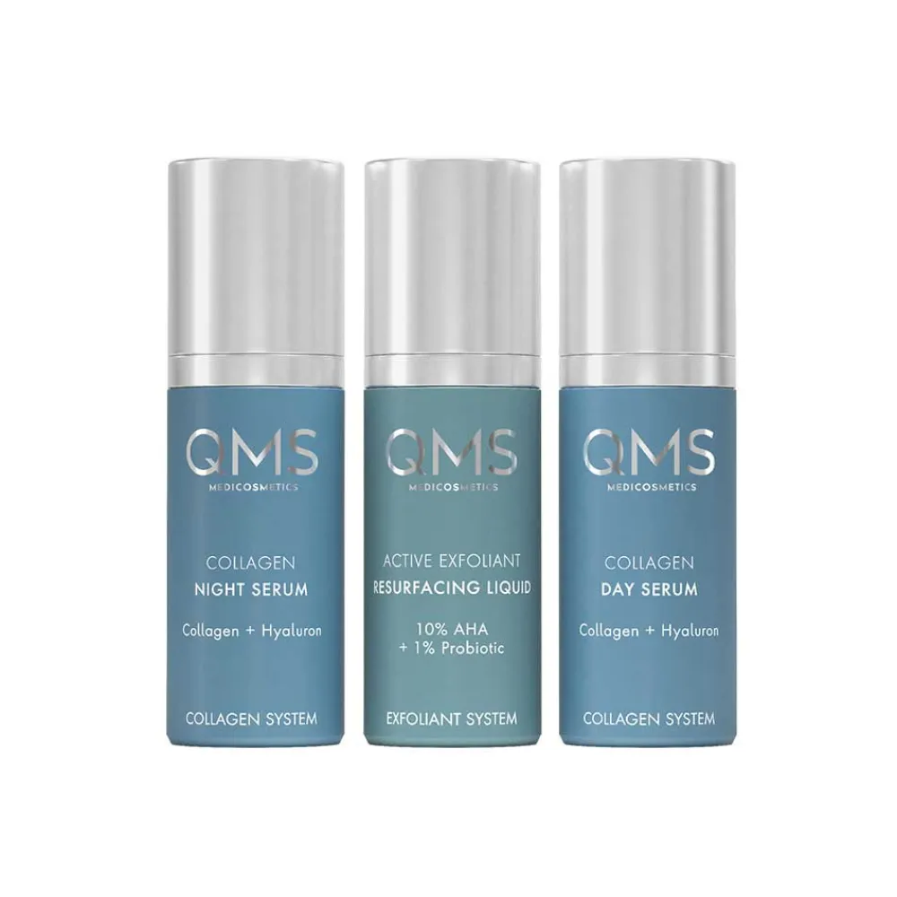 Das Day & Night 3-Step Core Routine Set Strong, bestehend aus 10% AHA Active Exfoliating Resurfacing Fluid, Collagen Day Serum und Collagen Night Serum, ist die elementare Basis deiner täglichen Hautpflege.