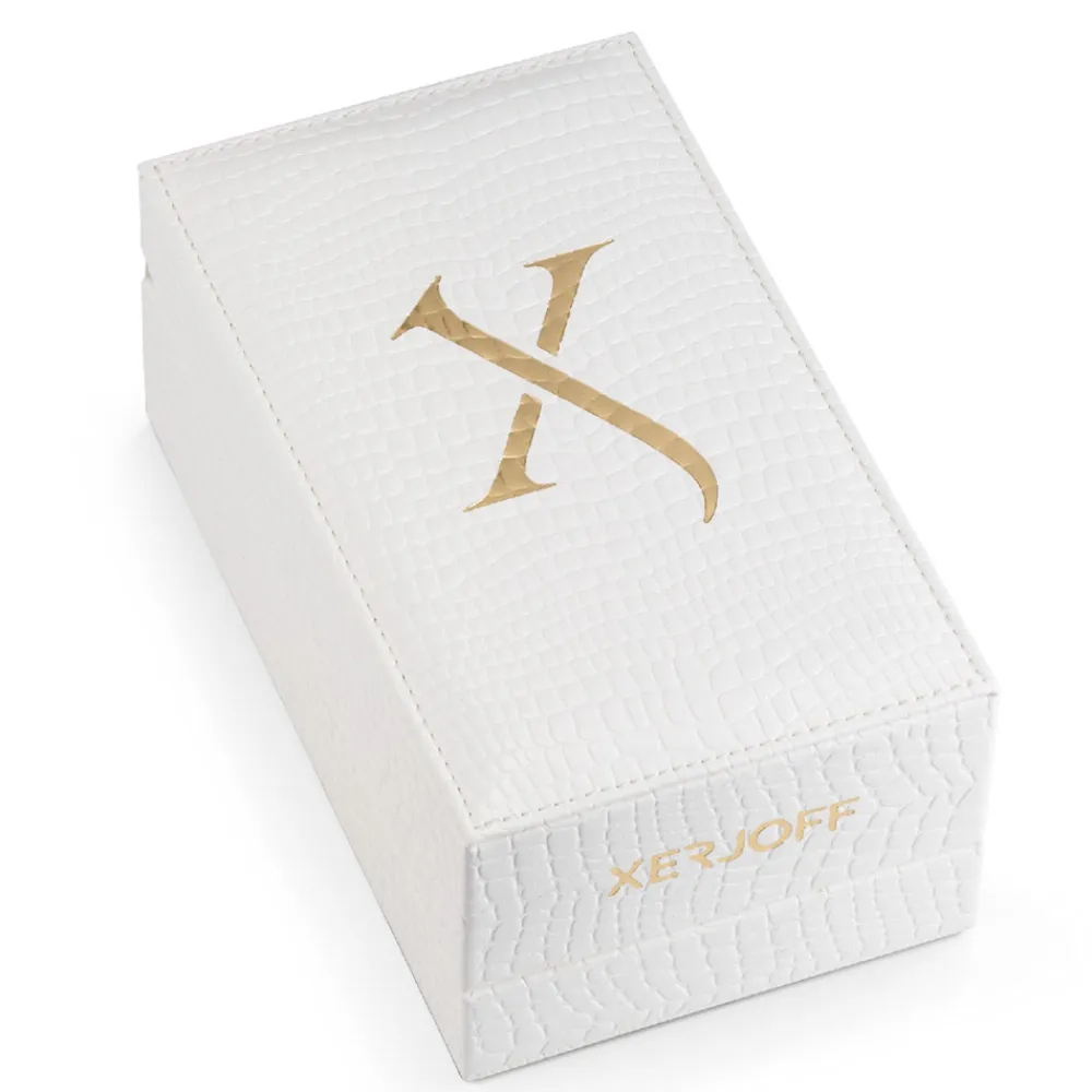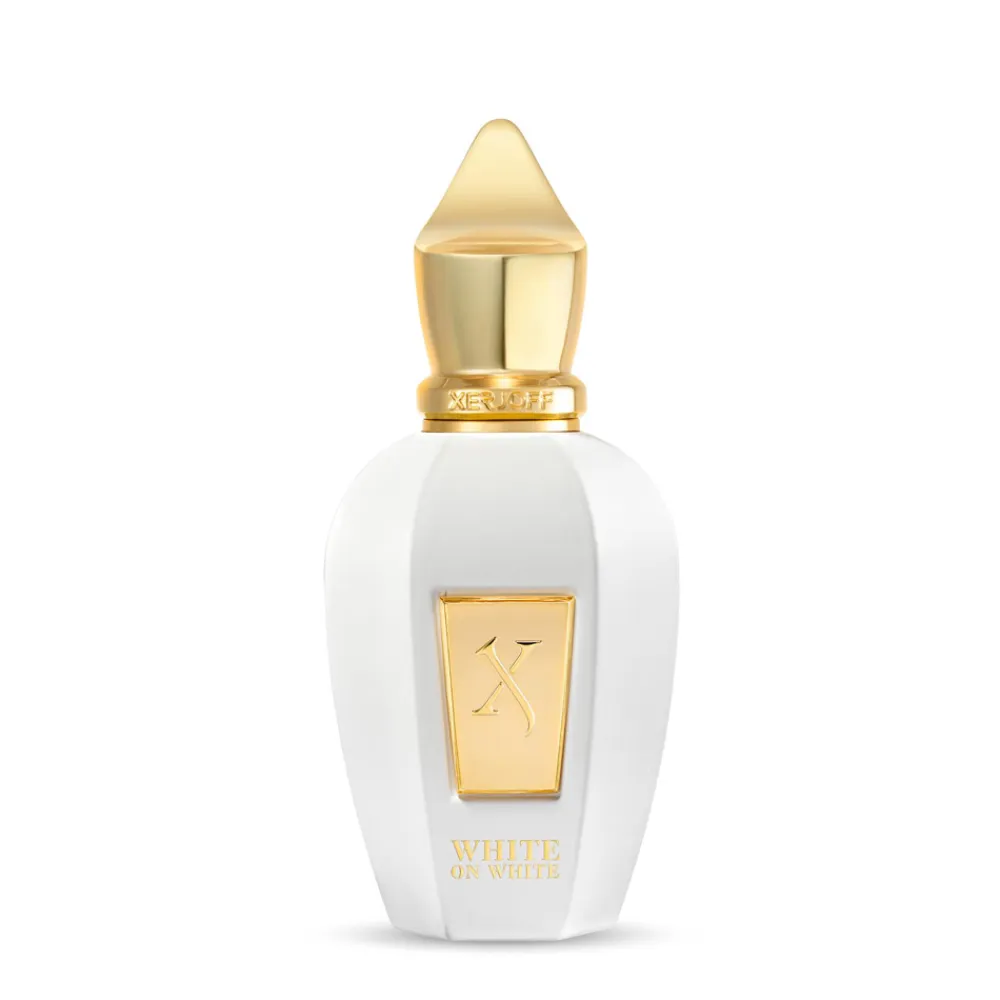 Der Flakon des Xerjoff White on White Eau de Parfum ist ein Kunstwerk für sich. Er präsentiert sich in edlem Weiß, das harmonisch mit goldenen Akzenten kombiniert wird. Die Form des Flakons ist ebenso anmutig wie einzigartig, mit einer eleganten, geschwungenen Silhouette, die von einem goldenen, spitz zulaufenden Verschluss gekrönt wird. Das goldene Emblem auf der Vorderseite unterstreicht die luxuriöse Erscheinung. Dieses visuelle Meisterwerk spiegelt die Exklusivität des Duftes wider und macht ihn zu einem wahren Blickfang in jeder Parfümsammlung.