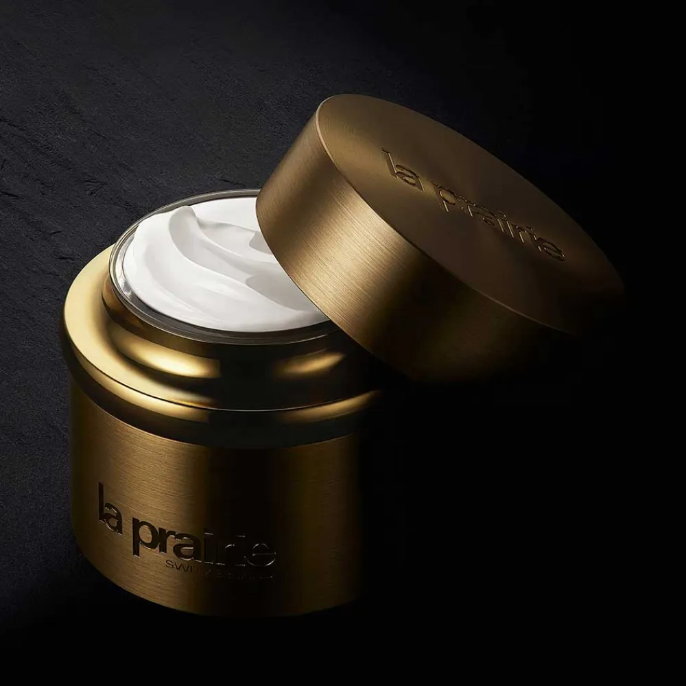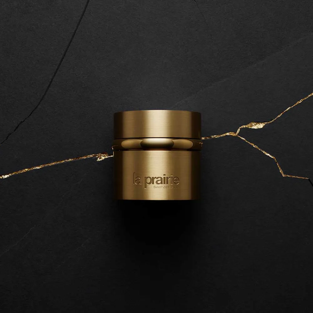Die La Prairie Pure Gold Radiance Cream präsentiert sich in einem eleganten, goldfarbenen Behälter, der Luxus und Exklusivität ausstrahlt. Das runde Design mit seinem sanften Schimmer und den klaren Linien wirkt zeitlos und stilvoll. Der Deckel schließt nahtlos ab und unterstreicht die Hochwertigkeit des Produkts. Diese detailreiche Gestaltung reflektiert die Feinheit und Präzision, die La Prairie ausmacht, und macht die Creme zu einem wahren Schmuckstück für Ihr Pflege-Ritual.