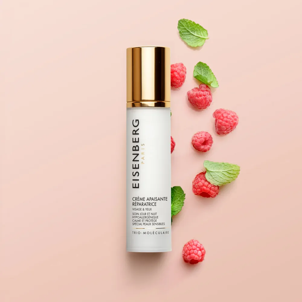 Die EISENBERG Crème Apaisante Réparatrice ist Ihr verlässlicher Begleiter im Kampf gegen umweltbedingte Hautstressoren. Ihre intensive Formel hydratisiert und schützt Ihre Haut, während sie auf sanfte Weise Rötungen mindert. Der Stammzellen-Extrakt aus Himbeerblättern entfaltet antioxidative, entzündungshemmende und lindernde Eigenschaften, die Ihre Haut beruhigen und den natürlichen Glanz wiederherstellen. Die innovative Trio-Molecular® Formula sorgt für eine sichtbare Reduktion der Hautrauhigkeit und bietet eine effektive Anti-Aging Wirkung. Diese Creme vereint Wissenschaft und Natur in perfekter Harmonie, um Ihrer Haut das Gefühl von Frische und Ausgeglichenheit zu verleihen.