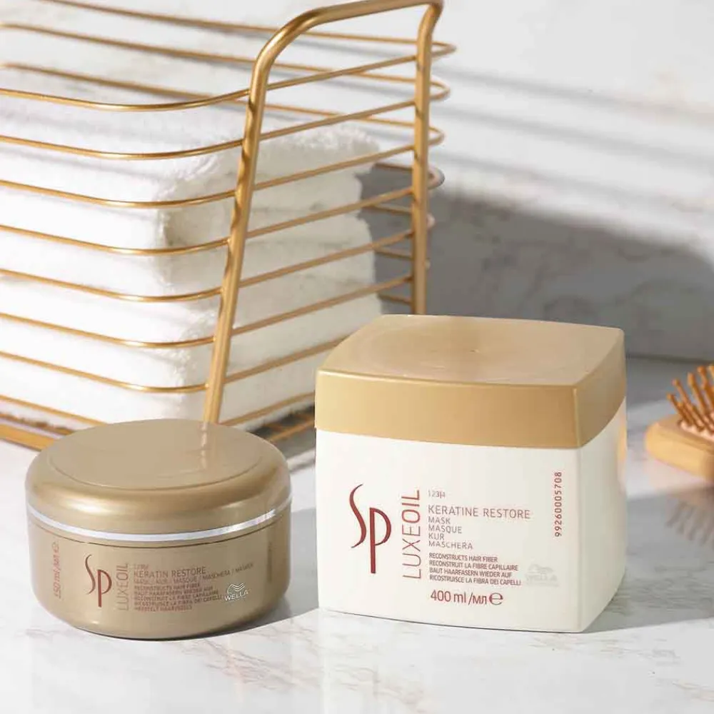 Die Wella SP Keratin Restore Mask bietet Ihnen die Möglichkeit, Ihre Haare mit einer intensiven Pflegekur zu verwöhnen. Diese reichhaltige Maske ist speziell darauf ausgelegt, das Keratin Ihrer Haare wieder aufzubauen, wodurch sie von innen gestärkt und geschmeidig werden. Die einzigartige Formulierung, angereichert mit einer Auswahl luxuriöser Öle, dringt tief in die Haarstruktur ein, um die Fasern zu rekonstruieren und zu pflegen. Egal, ob fein oder kräftig, lockig oder glatt dieses Produkt eignet sich für alle Haartypen und verleiht Ihrem Haar neuen Glanz und Vitalität. Vertrauen Sie auf die Expertise von Wella und schenken Sie Ihrem Haar die Pflege, die es verdient.
