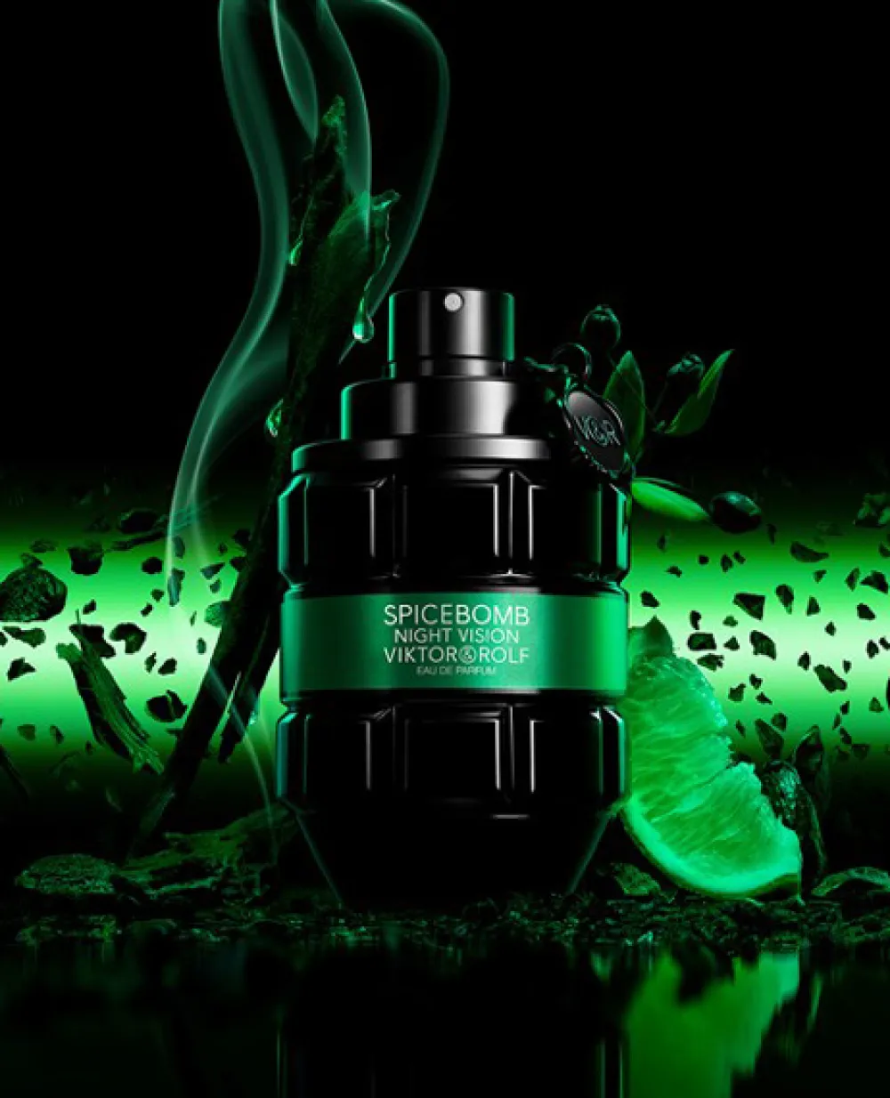 Der Flakon des Viktor&Rolf Night Vision Eau de Parfum Nat. Spray präsentiert sich in einer kraftvollen, modernen Form, die an eine Granate erinnert. Die elegante schwarze Farbe, kombiniert mit einem intensiven grünen Akzent, unterstreicht die geheimnisvolle und dynamische Natur des Parfums. Der praktische Sprühmechanismus ermöglicht eine einfache Anwendung, während das markante Design ein Statement von Stil und Eleganz setzt. Ein visuelles Meisterwerk, das ebenso fesselt wie der Duft selbst.