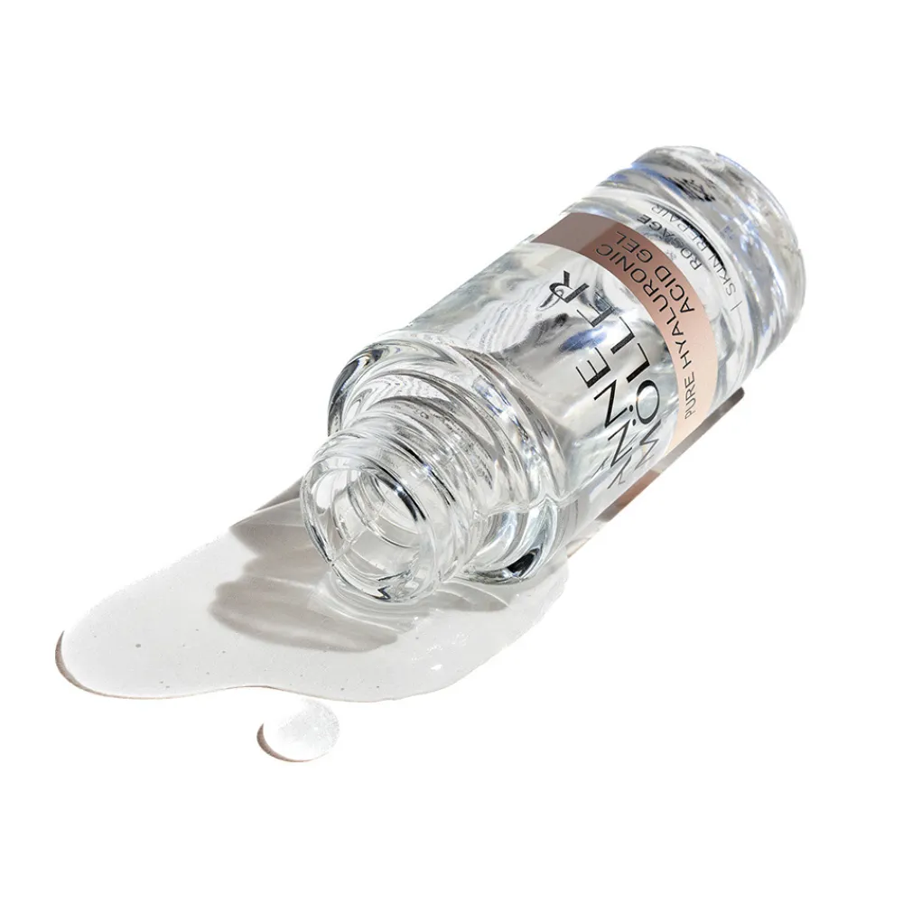 Das Anne Möller Concentrated Pure Hyaluronic Acid Gel präsentiert sich in einem eleganten, klaren Flakon, der ebenso funktional wie ästhetisch ist. Die zylindrische Form des Behälters vermittelt eine schlichte Eleganz, während der weiße Verschluss mit Pipette ein präzises und hygienisches Auftragen gewährleistet. Der minimalistische Schriftzug auf der transparenten Oberfläche unterstreicht die Reinheit und Klarheit des Produkts. Durch seine durchdachte Gestaltung wird der Flakon nicht nur zum praktischen, sondern auch zum stilvollen Begleiter in Ihrer täglichen Pflegeroutine.