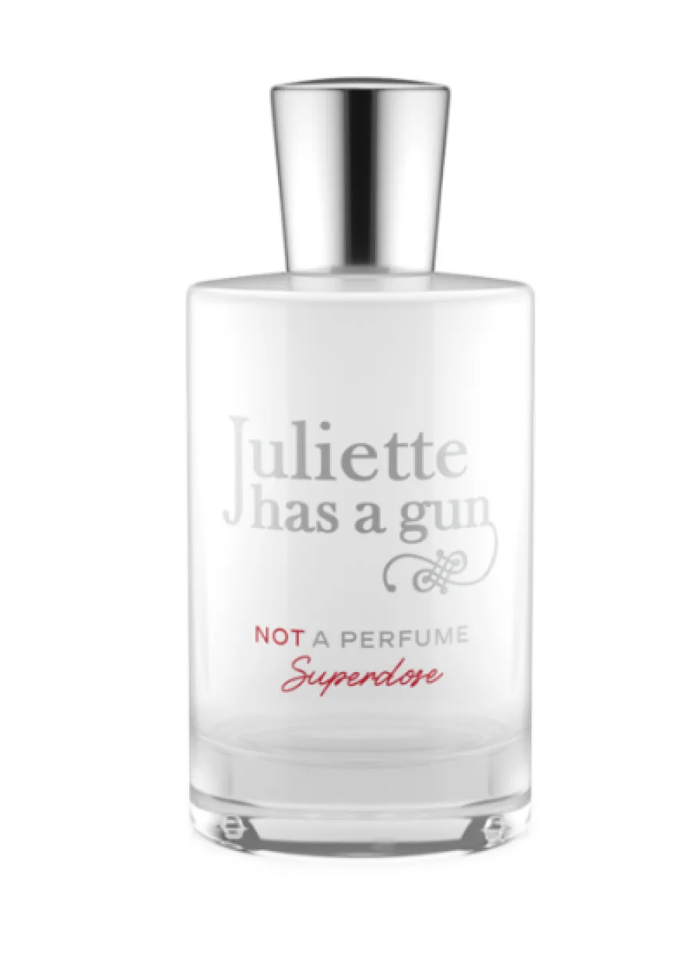 Der Flakon des Juliette has a Gun Superdose Eau de Parfum Nat. Spray besticht durch seine schlichte und doch eindrucksvolle Gestaltung. Die zylindrische Form verleiht ihm eine zeitlose Eleganz, während der klare, transparente Körper den puren Charakter des Duftes widerspiegelt. Der metallisch glänzende Verschluss setzt einen modernen Akzent, der das Gesamtbild des Flakons harmonisch abrundet. Diese visuelle Klarheit und Präzision unterstreichen die Reinheit der olfaktorischen Komposition und machen das Parfum zu einem ästhetischen Highlight in jeder Sammlung.