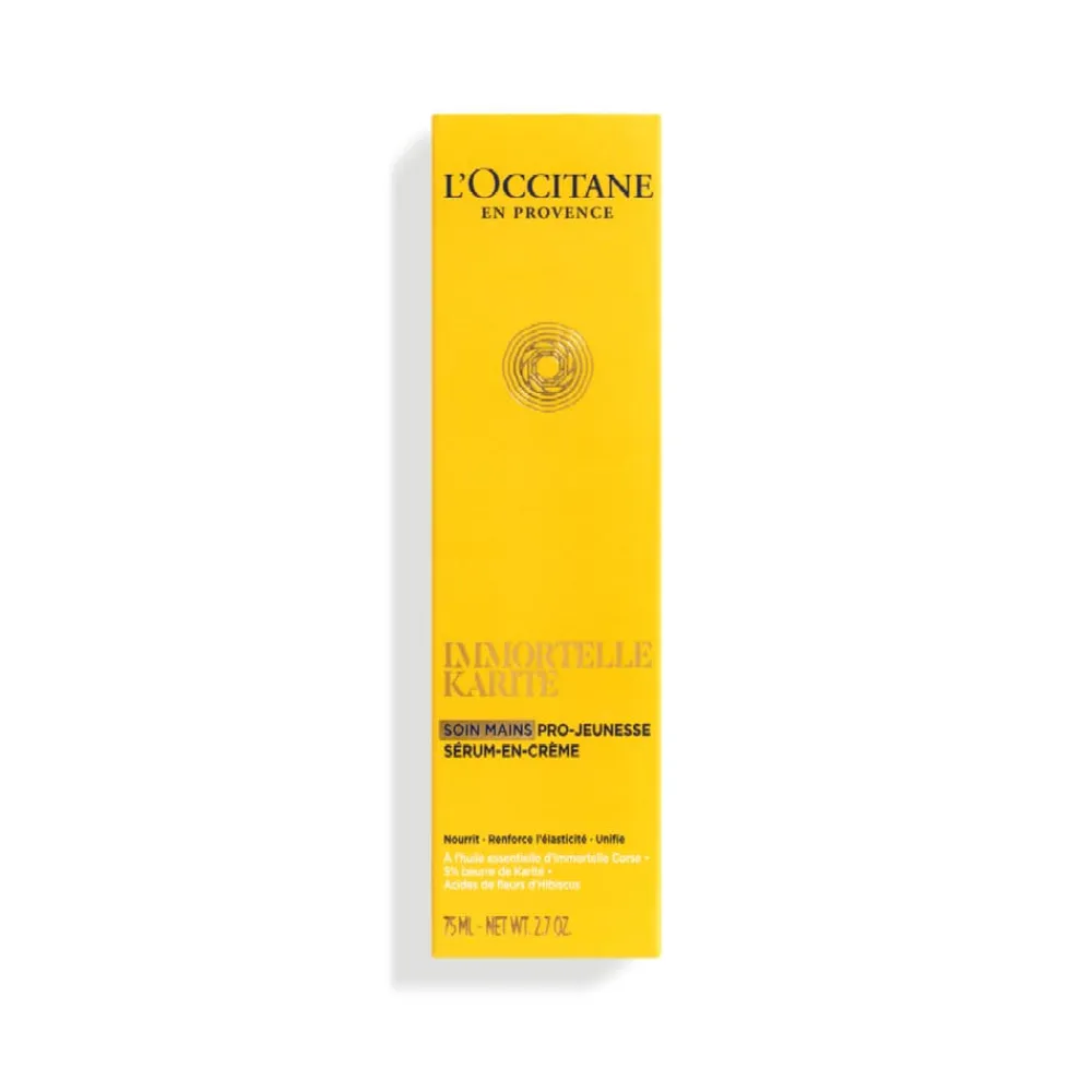 Die L’OCCITANE Handcreme für die Jugendlichkeit setzt auf die unvergleichliche Kombination von Immortelle und Sheabutter, um Ihre Hände umfassend zu pflegen. Mit ihrer tiefenwirksamen Formel bietet sie Ihrer Haut eine wunderbare Pflege, die die Zeichen der Zeit an den Händen sichtbar reduziert. Die reichhaltige Creme nährt Ihre Haut intensiv und verleiht ihr eine neue Festigkeit und Elastizität. Dank der hochwertigen Inhaltsstoffe wird das Hautbild gleichmäßiger und strahlt in neuer Leuchtkraft. Neben der optischen Verjüngung unterstützt die Creme auch die Stärkung Ihrer Nägel. Die silikonfreie Rezeptur garantiert ein natürliches Pflegeerlebnis, das die Regeneration und den Schutz der Haut unterstützt. Lassen Sie Ihre Hände den ganzen Tag über geschmeidig und jugendlich aussehen.