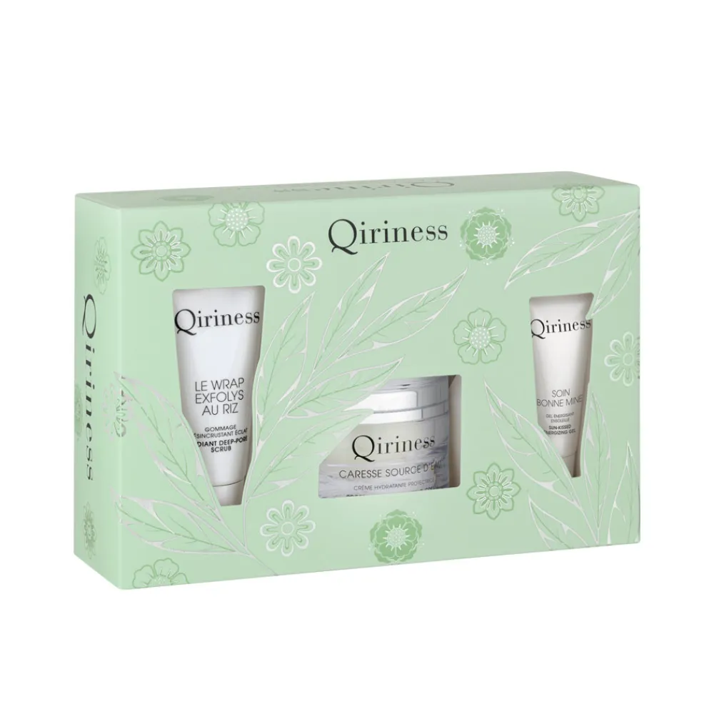 Das QIRINESS Boite à Caresse Source d’Eau Set bietet Ihnen eine exquisite Kombination aus Pflege und Schutz. Die CARESSE SOURCE D’EAU Creme verwöhnt Ihre Haut mit intensiver Feuchtigkeit, schützt vor schädlichen Umwelteinflüssen und verleiht Ihrer Haut ein volleres, vitales Erscheinungsbild. Ergänzend dazu sorgt die LE WRAP EXFOLYS AU RIZ Maske mit ihrer sanften Peeling-Wirkung für eine unglaublich glatte und strahlende Haut. Das SOIN BONNE MINE Gel bringt einen sonnigen Teint zum Vorschein, indem es die Haut optimal mit Feuchtigkeit versorgt und gleichzeitig ein ebenes Hautbild fördert. Diese sorgsam abgestimmte Pflegekollektion bietet alles, was Ihre Haut braucht, um sich von ihrer besten Seite zu zeigen.