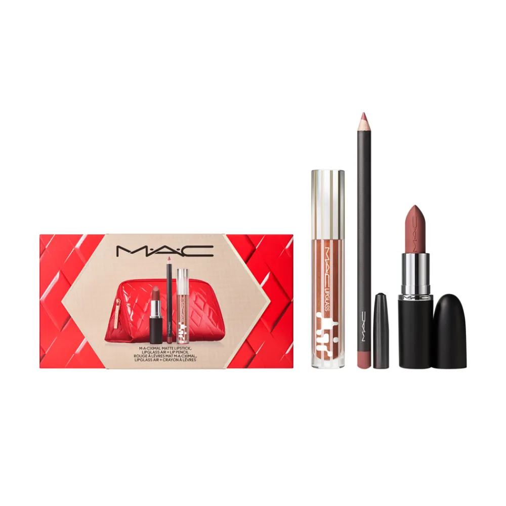 Für die Freundin, die jedem Mikrotrend verfällt… Tauschen Sie Modeerscheinungen gegen Fabelhaftes mit diesem zeitlosen Lippen-Trio, bestehend aus den meistverkauften Farbtönen des M·A·Cximal Silky Matte Lipstick und Lip Pencil, gepaart mit den brandneuen Farbtönen des Lipglass Air Non-Sticky Gloss in Rot und neutralen Farbtönen. Der M·A·Cximal Silky Matte Lipstick bietet 12 Stunden lang voll deckende Farbe und acht Stunden lang Feuchtigkeit. Der Lip Pencil hat eine geschmeidige, cremige Textur, die sich perfekt zum Konturieren und Ausfüllen der Lippen eignet. Der Lipglas Air Non-Sticky Gloss versorgt die Lippen den ganzen Tag lang mit Feuchtigkeit, ist luftig-leicht und pflegt die Lippen mit einem hochglänzenden Finish. Trage eine, zwei oder alle drei Farbtöne gleichzeitig auf, um eine Vielzahl von Lippen-Looks zu kreieren. Verpackt in einer exklusiven Weihnachtsverpackung zu einem M·A·Cnificient-Preis, bereit zum Verschenken.